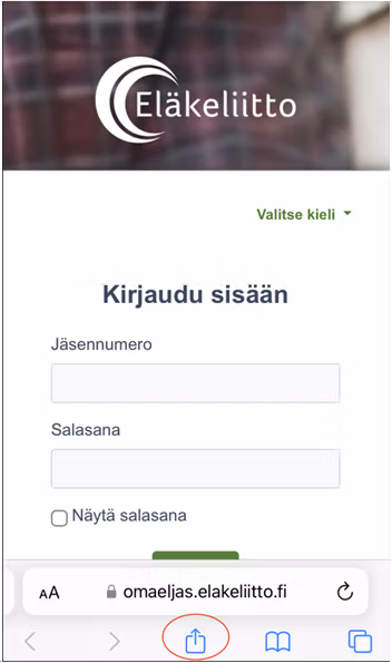 Avaa puhelimen nettiselaimessa OmaEljas-sivu https://omaeljas.elakeliitto.fi